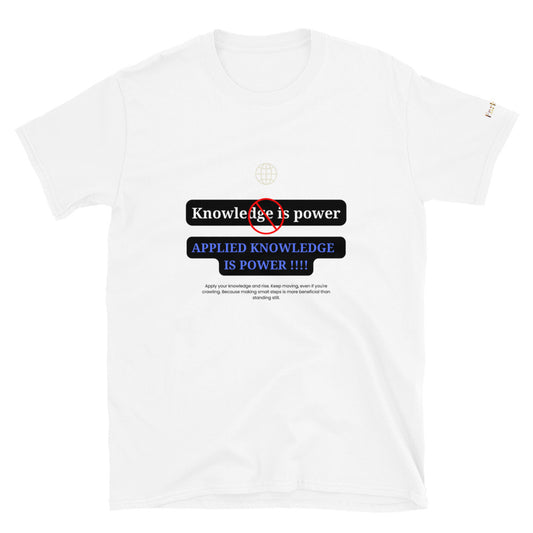 "Knowledge is power" white Short-Sleeve Tee-Shirt (blue design)