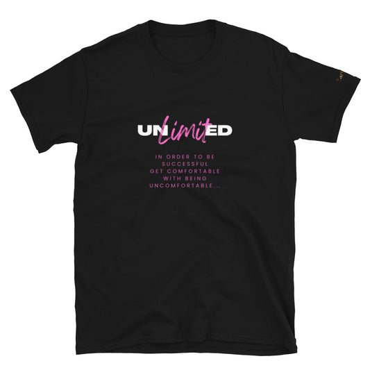 "Unlimited" Short-Sleeve black Tee-Shirt (pink design)