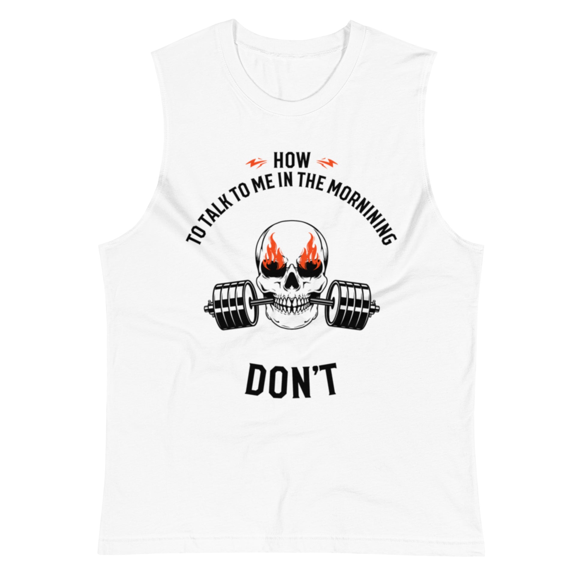 Rise and shine with our "Don't" Muscle Shirt! Our specially designed shirt will teach you the best way to communicate with me in the morning. With its bold and playful statement, it will not only make you stand out, but also make me smile. So don't hesitate, grab one now and start your mornings off right!